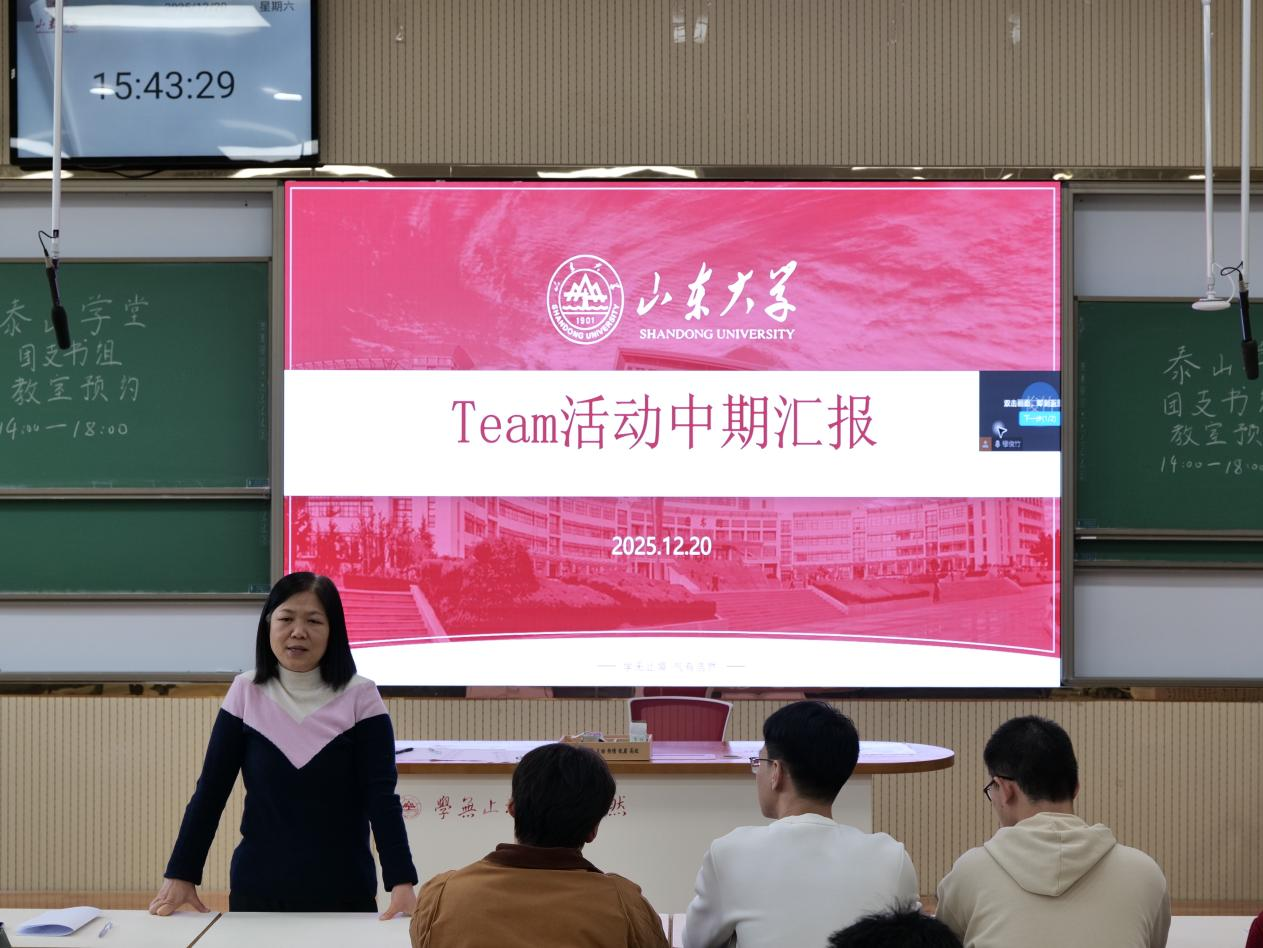 12月20日,泰山学堂2025级Team活动中期汇报评议会在电教楼举行。泰山学堂副处级辅导员于春娥、专职辅导员张志远出席活动并担任点评嘉宾,学堂部分高年级学生代表及2025级全体同学参会。活动由泰山学堂2025级团支书代表马润芃主持。